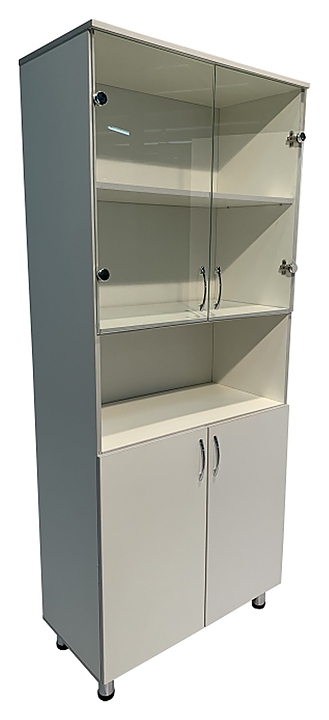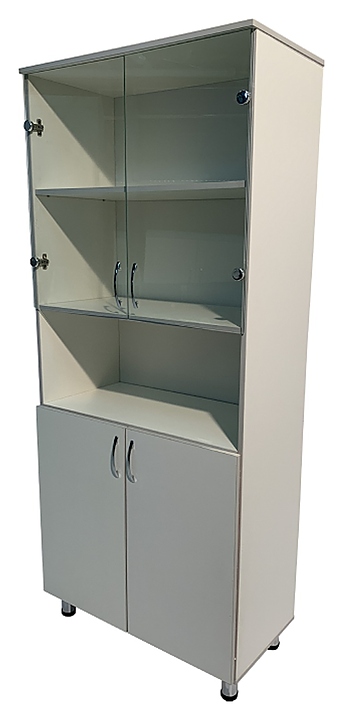 Медицинский шкаф Мед Мебель MD ШМ 14.45 предназначен для размещения и систематизации медицинской документации и оптимизации пространства в медицинских учреждениях. Модель оснащена полками, дверцами и регулируемыми по высоте ножками. Шкаф выполнен из ЛДСП, верхние дверцы - из стекла. Особенности: