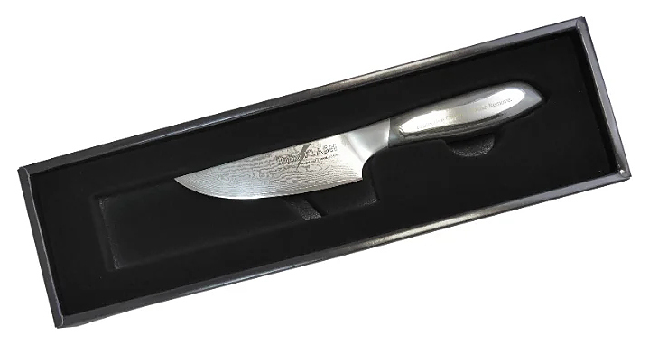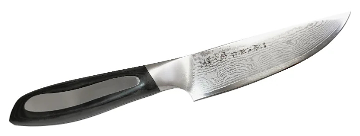 Универсальный нож Tojiro FF-TE125 предназначен для всех работ по мясу, рыбе в ресторанах, кафе. Лезвие выполнено из высококачественной нержавеющей тридцатисемислойной стали, устойчивой к коррозии. Рукоятка выполнена из нескольких слоёв, покрыта слоистым рисунком Micarta. Особенности:
