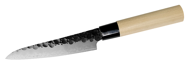 Шеф нож Tojiro F-1115 предназначен для нарезки овощей, корнеплодов, полуфабрикатов, разделки мяса, рыбы и птицы в ресторанах, кафе. Лезвие выполнено из высококачественной закалённой трёхслойной стали, устойчивой к коррозии. Рукоятка, имеет эллиптический профиль с одной спрямленной боковиной, выполнена из древесины магнолии с пластмассовой оковкой. Особенности:
