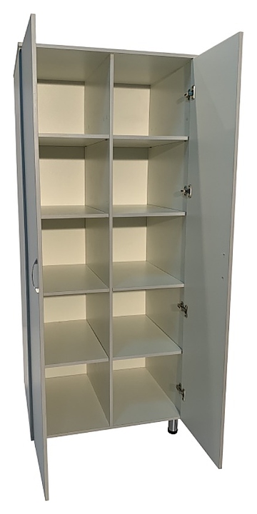 Медицинский шкаф Мед Мебель MD ШМо 15.07 предназначен для размещения одежды и личных вещей сотрудников в медицинских учреждениях. Модель оснащена полками, дверцами и регулируемыми по высоте ножками. Шкаф выполнен из ЛДСП. Особенности: