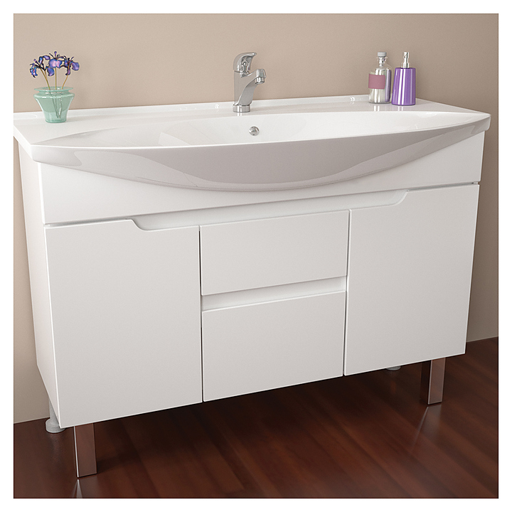 Тумба Dreja Laguna Plus 120 99.0110 в современном стиле идеально вписывается в любой интерьер ванной комнаты. Отличительной особенностью данной мебели является возможность как напольной, так и подвесной установки. Корпус выполнен из ЛДСП и покрыт глянцевой эмалью, которая характеризуется стойкостью к небольшим механическим повреждениям и простотой в уходе. Фасады изготовлены из высококачественной окрашенной МДФ, которая обеспечивает изделию привлекательный внешний вид, а также износостойкость и долговечность. Тумба используется вместе с раковиной Laguna 120 641242. В комплект поставки входят ножки и навесные крепления. Шурупы (крючки) с дюбелями в комплект поставки не входят и при необходимости приобретаются отдельно. Особенности: