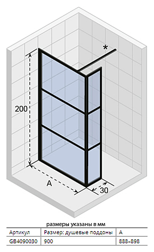 Душевая перегородка RIHO GRID GB402 90х30х200 см