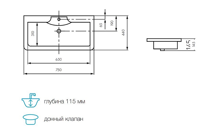 Раковина AQUATON Сиена 75 1A704131SN010 выполнена в современном стиле. Встраиваемая конструкция позволяет экономить место в ванной комнате для хранения туалетных принадлежностей. Модель оснащена широкой задней поверхностью, на которой можно размещать необходимые аксессуары для ежедневного использования. Изделие выполнено из литого мрамора, состоящего из природного молотого мрамора на 80% и полиэфирной смолы на 20%, с добавлением специальных пигментов и красителей, обладающего повышенной прочностью, устойчивостью к негативным внешним факторам и высокими антибактериальными свойствами. Раковина используется вместе с тумбой Валенсия 75 1A123601VAG30. Смеситель в комплект поставки не входит и приобретается отдельно. Комплектация: