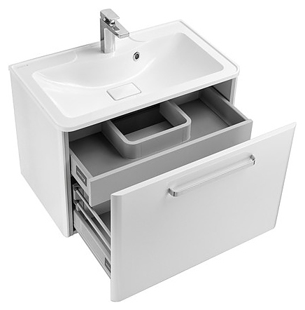 Тумба AQUATON Валенсия 75 1A123601VAG30 выполнена в современном стиле. Благодаря подвесной конструкции изделие не занимает много места и обеспечивает легкую уборку в ванной комнате. Модель оснащена большим выдвижным ящиком, в котором находится выдвижной ящик меньшего размера для хранения небольших принадлежностей, на дне обоих ящиков расположены специальные коврики. Изделие выполнено из влагостойкой ЛДСП и высококачественной МДФ и покрыто матовой пленкой цвета белый жемчуг, что обеспечивает изделию привлекательный внешний вид, а также износостойкость и долговечность. Тумба используется вместе с раковинами Сиена 75 1A704131SN010 и Сиена М 75 1A70613KSN010. Комплектация: