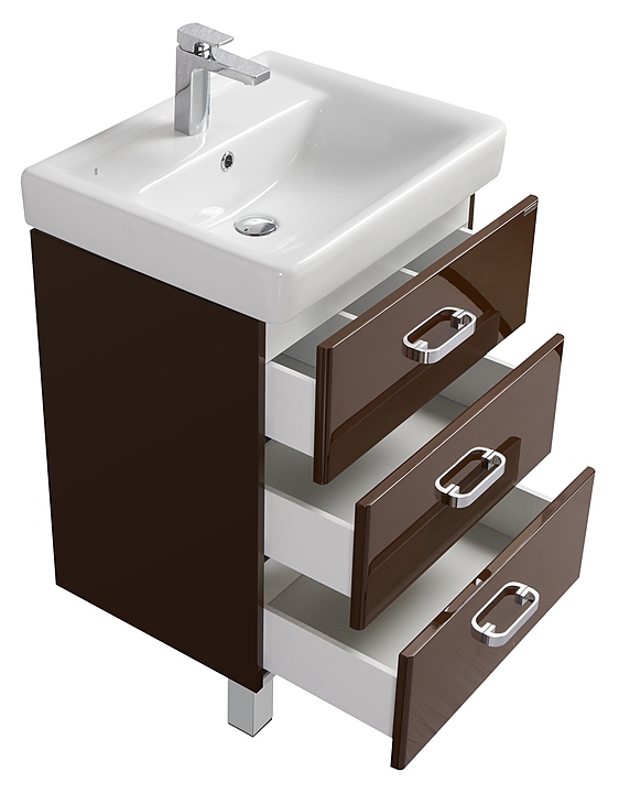 Тумба AQUATON Америна 60 М 1A168901AM430 выполнена в классическом стиле. Напольная конструкция обеспечивает легкий монтаж и не требует специального ремонта в помещении. Модель оснащена тремя выдвижными ящиками с системой плавного закрывания, верхний ящик с системой организации пространства. Корпус изделия выполнен из влагостойкой ЛДСП, а фасад из высококачественной МДФ и окрашены тёмно-коричнево глянцевой полиэфирной краской ультрафиолетового отверждения, которая обеспечивает изделию привлекательный внешний вид, а также износостойкость и долговечность. Тумба используется вместе с раковиной Santek Тигода 60 1WH302082. Комплектация: