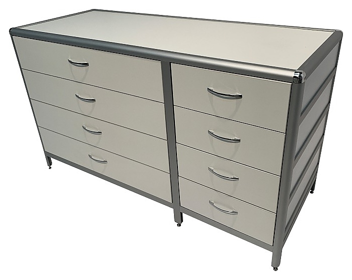 Лабораторная стол-тумба Мед Мебель MED 12.016al с РУ предназначена для оптимизации рабочего места сотрудников в лабораториях и медучреждениях. Модель оснащена выдвижными ящиками и регулируемыми по высоте ножками. Обшивка и столешница выполнены из ЛДСП, каркас - из алюминиевого профиля. Тумба поставляется с регистрационным удостоверением. Особенности: