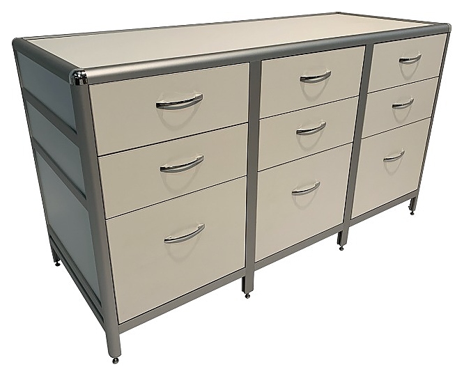 Лабораторная стол-тумба Мед Мебель MED 12.019al с РУ предназначена для оптимизации рабочего места сотрудников в лабораториях и медучреждениях. Модель оснащена выдвижными ящиками и регулируемыми по высоте ножками. Обшивка и столешница выполнены из ЛДСП, каркас - из алюминиевого профиля. Тумба поставляется с регистрационным удостоверением. Особенности: