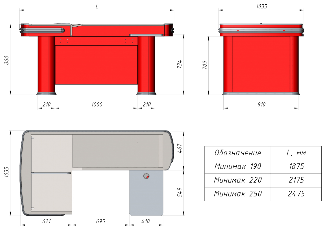 • При необходимости стол разворачивается на 180º при любом направлении прилавка