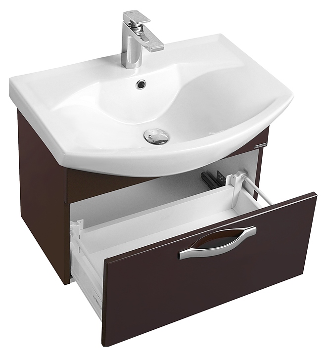Тумба AQUATON Ария 65 1A134001AA430 выполнена в современном стиле. Благодаря подвесной конструкции изделие не занимает много места и обеспечивает легкую уборку в ванной комнате. Модель оснащена одним вместительным выдвижным ящиком с удобной системой внутренней организации пространства. Корпус изделия выполнен из влагостойкой ЛДСП, а фасад из высококачественной МДФ и окрашены тёмно-коричневой глянцевой полиэфирной краской ультрафиолетового отверждения, которая обеспечивает изделию привлекательный внешний вид, а также износостойкость и долговечность. Тумба используется вместе с раковиной Santek Смайл 65 1WH207782. Комплектация: