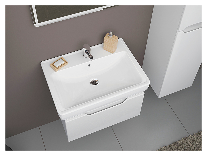 Тумба Dreja Tiny 60 99.0902 в современном стиле идеально вписывается в любой интерьер ванной комнаты. Строгий минимализм, лаконичный дизайн, глянцевая поверхность фасада - все это выделяет коллекцию среди остальных. Подвесная конструкция и отсутствие ножек создают иллюзию парения в воздухе и упрощают уборку. Корпус выполнен из ЛДСП и покрыт глянцевой эмалью, которая характеризуется стойкостью к небольшим механическим повреждениям и простотой в уходе. Фасады изготовлены из высококачественной окрашенной МДФ, которая обеспечивает изделию привлекательный внешний вид, а также износостойкость и долговечность. Тумба используется вместе с раковиной Mini 60 641785. В комплект поставки входят навесные крепления. Шурупы (крючки) с дюбелями в комплект поставки не входят и приобретаются отдельно. Особенности: