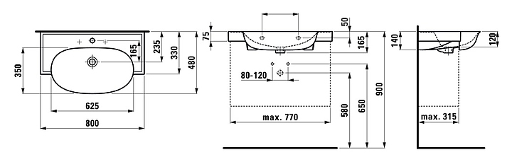 Раковина накладная Laufen The New Classic 8.1385.5.000.104.1