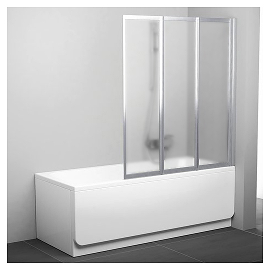 Шторка Ravak VS3 предназначена для установки с ваннами. Модель состоит из трех подвижных частей, которые складываются вовнутрь ванны. Перевернув изделие на 180°, получится левый или правый варианты установки. Шторка отличается простым монтажом и можно устанавливать уже в готовую ванную комнату. Витражи выполнены из безопасного стекла в декоре Grape и покрыты слоем AntiCalc® для защиты поверхности от минеральных разводов. Шторка подходит для ванн BeHappy II 170, прямоугольных ванн RAVAK City, Formy 01/02, 10°, Classic, Campanula II, Vanda II, Chrome, Domino или для любой классической прямоугольной ванны с ровным передним бортом. Особенности: