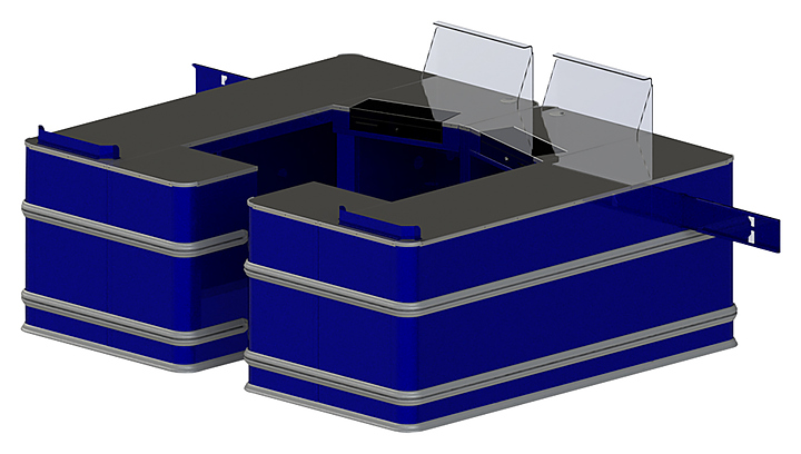 Кассовый бокс Commerce Renessance Апарт раунд 1750 см предназначен для упрощения обслуживания покупателей и проведения с ними взаиморасчетов в гипермаркетах. Модель оснащена тумбой кассира, полками в основании, блоком розеток и боковой соединительной панелью. Изделие выполнено из стали, покрытой порошковой краской. Модель доступна к заказу в синем, красном, оранжевом, желтом, темно-зеленом, светло-зеленом, сером, черном и фиолетовом цвете. Особенности: