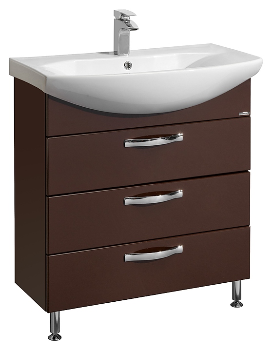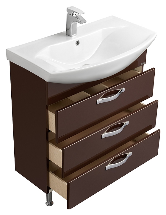Тумба AQUATON Ария 80 Н 1A141301AA430 выполнена в современном стиле. Напольная конструкция обеспечивает легкий монтаж и не требует специального ремонта в помещении. Модель оснащена тремя выдвижными ящиками для хранения необходимых в ванной комнате принадлежностей, верхний ящик с системой организации пространства. Корпус изделия выполнен из влагостойкой ЛДСП, а фасад из высококачественной МДФ и окрашены тёмно-коричневой глянцевой полиэфирной краской ультрафиолетового отверждения, которая обеспечивает изделию привлекательный внешний вид, а также износостойкость и долговечность.