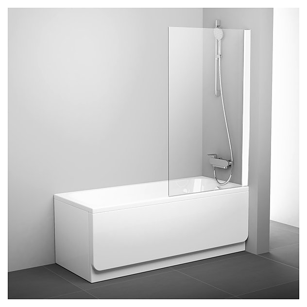 Шторка для ванны Ravak PVS1 80 см, неподвижная, Transparent, профиль белый