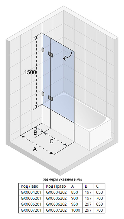Шторка в ванну RIHO Scandic M109 V 100х150 см, R