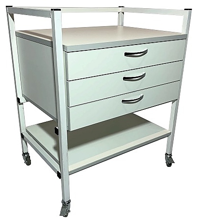 Мобильный лабораторный стол Мед Мебель СЛм 17.003 с РУ предназначен для временного размещения необходимых инструментов, приборов и предметов, используемых в медицинских лабораториях для проведения исследований. Каркас обеспечивает легкость и прочность конструкции. Модель оснащена 3 выдвижными ящиками под столешницей и 4 колесными опорами со стояночным тормозом, благодаря которым столик можно свободно перемещать по комнате. Столешница и ящики выполнены из ЛДСП, каркас - из стального профиля, покрытого порошковой краской. Стол поставляется с регистрационным удостоверением. Дополнительные характеристики:
