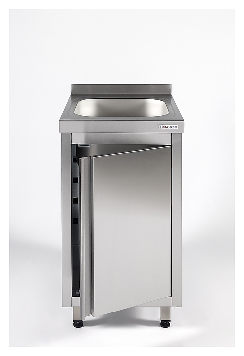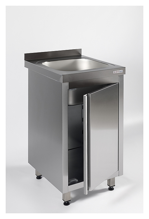 Моечная ванна Restoinox ВМЦЗ-1/5/6-Б используется на предприятиях общественного питания и торговли для мытья посуды, кухонного инвентаря и продуктов. Модель оснащена бортом и распашной дверью. Ножки выполнены из квадратной трубы 40х40 мм из нержавеющей стали Aisi 430, корпус - из нержавеющей стали AISI 430, задняя стенка - из оцинкованной стали, емкость - из нержавеющей стали AISI 304. Особенности:
