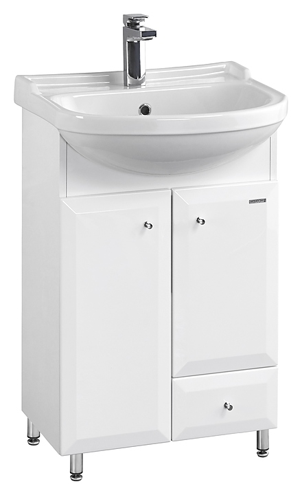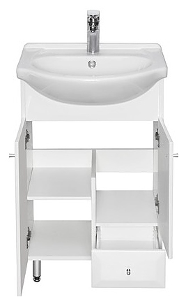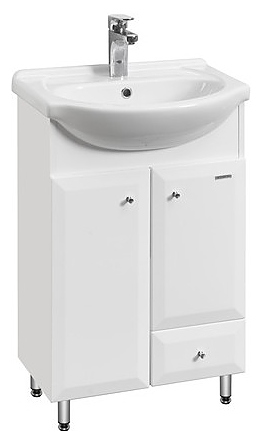 Тумба AQUATON Джимми 57 1A068201DJ010 выполнена в современном стиле. Напольная конструкция обеспечивает легкий монтаж и не требует специального ремонта в помещении. Модель оснащена распашными фасад-створками, за которыми находится регулируемая по высоте полка и выдвижным ящиком в нижней части тумбы. Корпус изделия выполнен из влагостойкой ЛДСП, а фасад из высококачественной МДФ и окрашены белоснежной глянцевой полиэфирной краской ультрафиолетового отверждения, которая обеспечивает изделию привлекательный внешний вид, а также износостойкость и долговечность. Тумба используется вместе с раковиной Santek Линда 55 1WH110156. Комплектация: