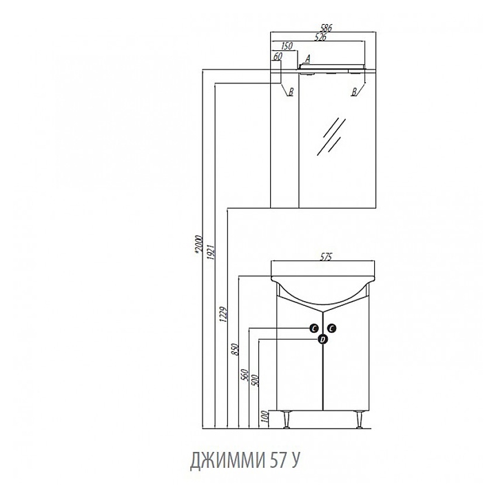 Тумба AQUATON Джимми 57 У 1A068401DJ010 / 1A250501DJ010