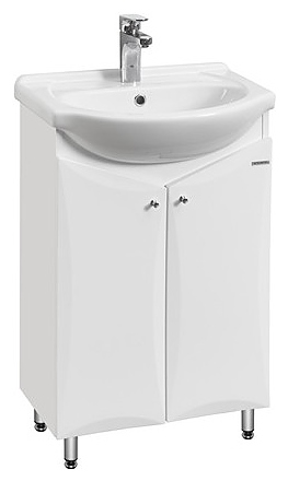 Тумба AQUATON Джимми 57 У 1A068401DJ010 выполнена в современном стиле. Напольная конструкция обеспечивает легкий монтаж и не требует специального ремонта в помещении. Модель оснащена распашными фасад-створками, за которыми находится регулируемая по высоте полка. Корпус изделия выполнен из влагостойкой ЛДСП, а фасад из высококачественной МДФ и окрашены белоснежной глянцевой полиэфирной краской ультрафиолетового отверждения, которая обеспечивает изделию привлекательный внешний вид, а также износостойкость и долговечность. Тумба используется вместе с раковиной Santek Линда 55 1WH110156. Комплектация: