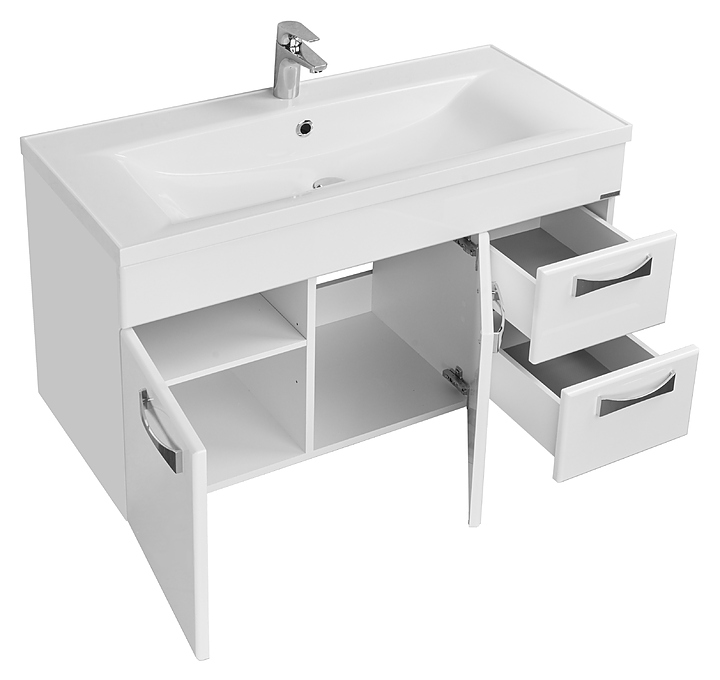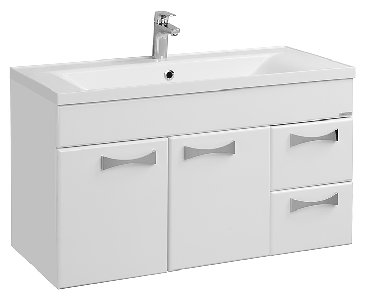 Тумба AQUATON Диор 100 1A167701DR010 выполнена в современном стиле. Благодаря подвесной конструкции изделие не занимает много места и обеспечивает легкую уборку в ванной комнате. Модель оснащена распашными фасад-створками, за которыми находится регулируемая по высоте полка и двумя вместительными выдвижными ящиками в правой части тумбы. Корпус изделия выполнен из влагостойкой ЛДСП, а фасад из высококачественной МДФ и окрашены белоснежной глянцевой полиэфирной краской ультрафиолетового отверждения, которая обеспечивает изделию привлекательный внешний вид, а также износостойкость и долговечность. Тумба используется вместе с раковиной Айрис 100 1A723031AG010. Комплектация: