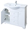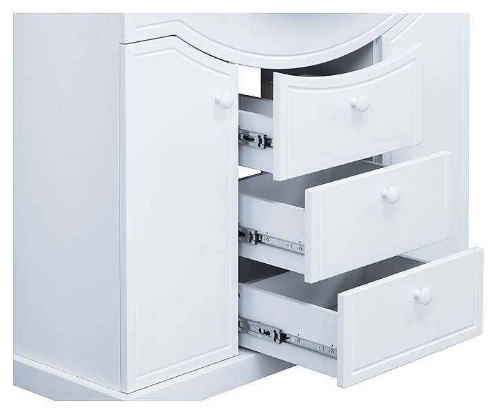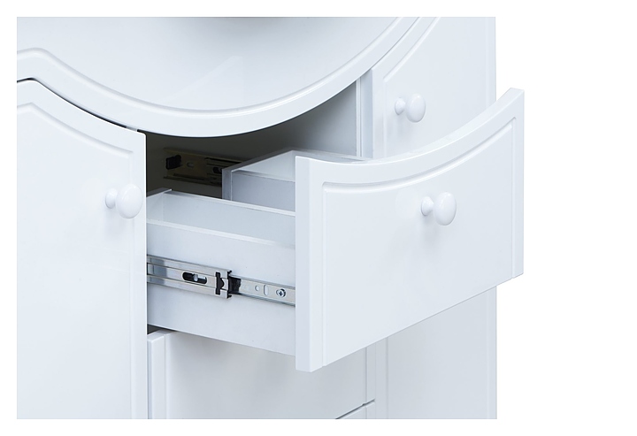 Тумба AQUATON Элен 95 1A218501EN010 выполнена в классическом стиле. Напольная конструкция обеспечивает легкий монтаж и не требует специального ремонта в помещении. Модель оснащена слева и справа распашными фасад-створками с легкой фрезеровкой, за которыми находятся полки, а в центре находятся три вместительных выдвижных ящика, что делает тумбу максимально функциональной. Корпус изделия выполнен из влагостойкой ЛДСП, а фасад из высококачественной МДФ и окрашены белоснежной глянцевой полиэфирной краской ультрафиолетового отверждения, которая обеспечивает изделию привлекательный внешний вид, а также износостойкость и долговечность. Тумба используется вместе с раковиной Santek Аквастоун 95 1WH110219. Комплектация: