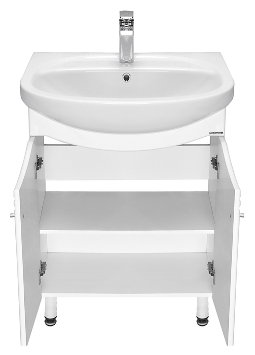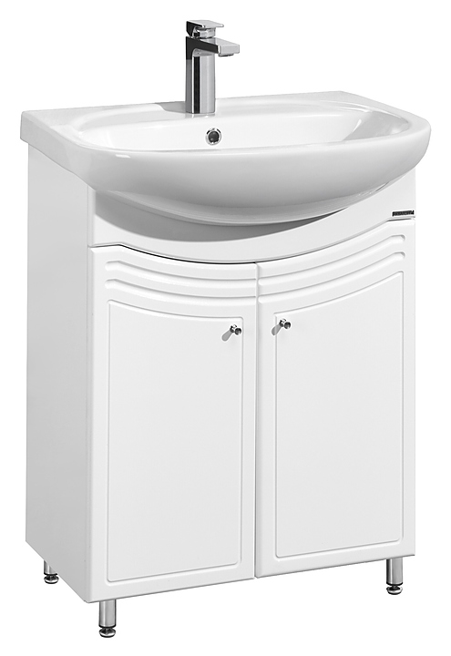 Тумба AQUATON Домус 65 1A055201DO010 выполнена в классическом стиле. Напольная конструкция обеспечивает легкий монтаж и не требует специального ремонта в помещении. Модель оснащена распашными фасад-створками с декоративной фрезеровкой, за которыми находятся полки. Корпус изделия выполнен из влагостойкой ЛДСП, а фасад из высококачественной МДФ и окрашены белоснежной глянцевой полиэфирной краской ультрафиолетового отверждения, которая обеспечивает изделию привлекательный внешний вид, а также износостойкость и долговечность. Тумба используется вместе с раковинами Santek Стелла 65 1WH110174 и Акваполо 65 1WH110162. Комплектация: