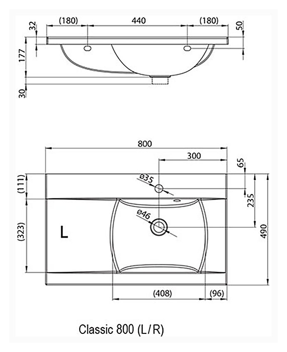 Раковина Ravak Classic 800 80x49 см, мрамор, правая