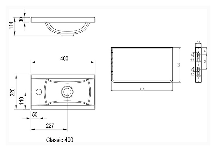 Раковина Ravak Classic 400 от популярного чешского бренда предназначена для самых маленьких ванных и туалетных комнат. Благодаря подвесной конструкции раковина не занимает много места, что позволяет экономить пространство в небольшом помещении, также возможна установка на мебель или в угол. Модель оснащена широкими поверхностями, на которых можно размещать необходимые аксессуары для ежедневного использования. Изделие выполнено из литого мрамора, который обладает повышенной прочностью и устойчивостью к негативным внешним факторам, а также долгое время сохраняет идеальную белизну и не впитывает запахи и грязь. В комплект поставки входит монтажный набор (соединительные дюбеля, винты и т.д.). Смеситель в комплект поставки не входит и приобретается отдельно. Особенности: