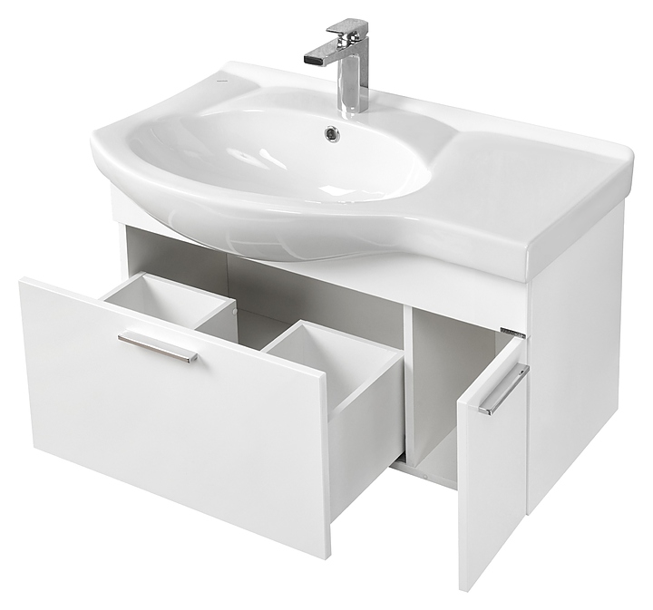 Тумба AQUATON Инди 80 1A188401ND010 выполнена в современном стиле. Благодаря подвесной конструкции изделие не занимает много места и обеспечивает легкую уборку в ванной комнате. Модель оснащена выдвижным фасадом с двумя ящиками для хранения необходимых в ванной комнате принадлежностей и фасад-створкой с правой части тумбы. Корпус изделия выполнен из влагостойкой ЛДСП, а фасад из высококачественной МДФ и окрашены белоснежной глянцевой полиэфирной краской ультрафиолетового отверждения, которая обеспечивает изделию привлекательный внешний вид, а также износостойкость и долговечность. Тумба используется вместе с раковиной Santek Коралл 83 1WH110228. Комплектация: