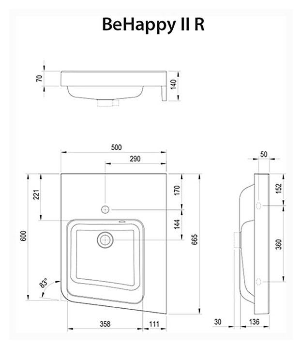 Раковина Ravak BeHappy II 50x66,5 см, мрамор, правая