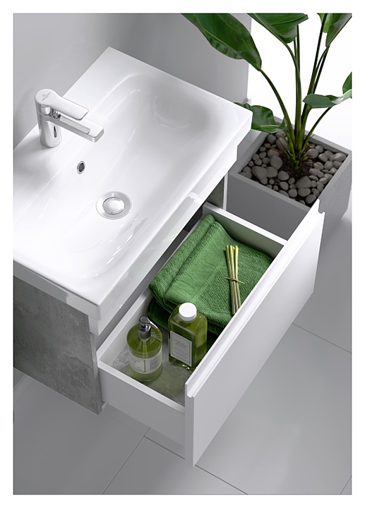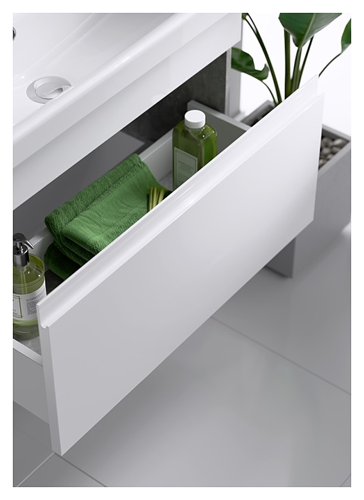 Тумба Aqwella Smart SRT0108BS подходит к большинству интерьеров ванных комнат. Подвесная конструкция и отсутствие ножек создают иллюзию парения в воздухе и упрощают уборку. Ящик тумбы оснащен скрытыми направляющими с системой мягкого закрывания. Корпус мебели выполнен из ЛДСП повышенной плотности. Фасады производятся из МДФ и окрашены в белоснежный цвет с высокой степенью глянца полиэфирной краской, которая обеспечивает изделию привлекательный внешний вид, а также износостойкость и долговечность. Тумба используется вместе с раковиной Moduo Slim 80. Для установки понадобится набор крепежей для монтажа на стену. Дополнительные характеристики: