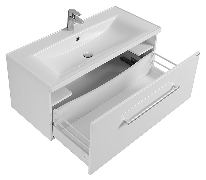 Тумба AQUATON Мадрид 100 М 1A126901MA010 выполнена в классическом стиле. Благодаря подвесной конструкции изделие не занимает много места и обеспечивает легкую уборку в ванной комнате. Модель оснащена вместительным ящиком со встроенной системой плавного закрывания, а на дне ящика расположен антискользящий коврик. Корпус выполнен из влагостойкой ЛДСП, а фасад из высококачественной МДФ и покрыты белой полиэфирной краской ультрафиолетового отверждения с высокой степенью глянца, которая обеспечивает изделию привлекательный внешний вид, а также износостойкость и долговечность. Тумба используется вместе с раковинами Айрис 100 1A723031AG010, Премьер 100 1A702531PR010 и Премьер М 100 1A70473KPR010. Комплектация:
