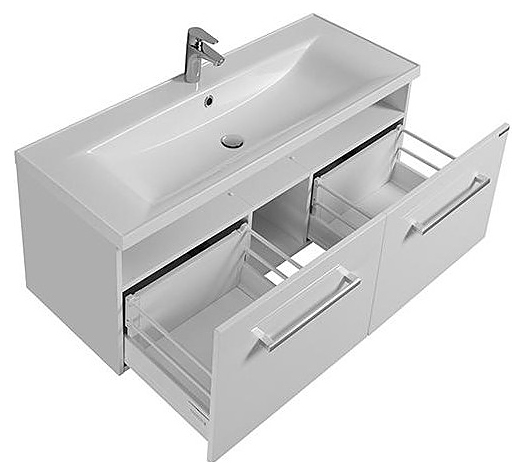 Тумба AQUATON Мадрид 100М 1A128001MA010 выполнена в классическом стиле. Благодаря подвесной конструкции изделие не занимает много места и обеспечивает легкую уборку в ванной комнате. Модель оснащена двумя вместительными ящиками со встроенной системой плавного закрывания, а на дне ящика расположен антискользящий коврик. Корпус выполнен из влагостойкой ЛДСП, а фасад из высококачественной МДФ и покрыты белой полиэфирной краской ультрафиолетового отверждения с высокой степенью глянца, которая обеспечивает изделию привлекательный внешний вид, а также износостойкость и долговечность. Тумба используется вместе с раковинами Айрис 100 1A723031AG010, Премьер 100 1A702531PR010 и Премьер М 100 1A70473KPR010. Комплектация: