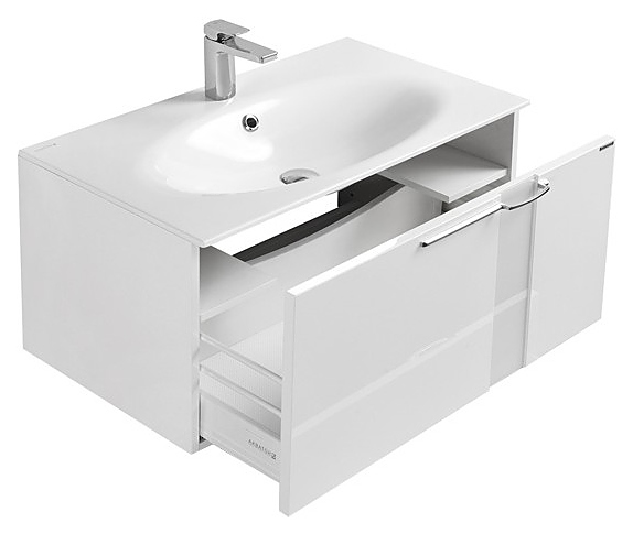 Тумба AQUATON Марко 100 1A190201MO010 выполнена в современном стиле. Благодаря подвесной конструкции изделие не занимает много места и обеспечивает легкую уборку в ванной комнате. Модель оснащена вместительным выдвижным ящиком с стеклянной вставкой на фасаде. Корпус изделия выполнен из влагостойкой ЛДСП, а фасад из высококачественной МДФ и окрашены белоснежной глянцевой полиэфирной краской ультрафиолетового отверждения, которая обеспечивает изделию привлекательный внешний вид, а также износостойкость и долговечность. Тумба используется вместе с раковинами Тина 100 1A710431TI010 и Айрис 100 1A723031AG010. Комод в комплект поставки не входит и приобретается отдельно. Комплектация: