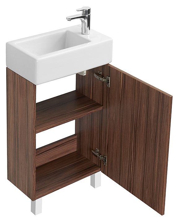 Тумба AQUATON Эклипс Н 1A172601EK560 выполнена в современном стиле. Напольная конструкция обеспечивает легкий монтаж и не требует специального ремонта в помещении. Модель оснащена фасад-створкой, за которой находится регулируемая по высоте полка. Изделие выполнено из влагостойкой ЛДСП с эффектной тёмной текстурой эбони, что обеспечивает изделию привлекательный внешний вид, а также износостойкость и долговечность. Тумба используется вместе с раковиной Santek Эрис 46 1WH301972. Комплектация: