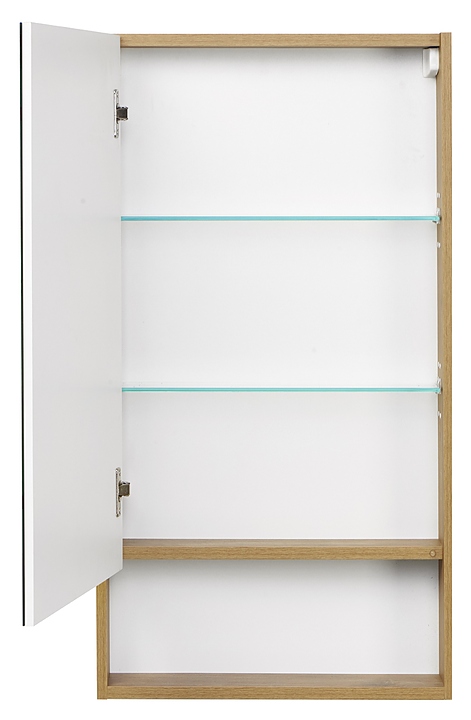 Зеркальный шкаф AQUATON Сканди 45 1A252002SDZ90 выпонен в современном и лаконичном стиле и отлично дополнит интерьер любой ванной комнаты. Благодаря подвесной конструкции модель не занимает много места, что позволяет экономить пространство в небольшой ванной комнате, а также облегчает уборку. Модель оснащена зеркальной дверцей с системой «плавное закрывание», двумя стеклянными полками в отделении и открытой полкой в нижней части шкафа. Корпус и зеркальный фасад выполнены из влагостойкой ЛДСП в цвете дуб рустикальный, а внутренняя отделка выполнена белой краской, предназначенной для использования во влажных помещениях, что обеспечивает изделию привлекательный внешний вид, а также износостойкость и долговечность. Для установки понадобится набор крепежей для монтажа на стену. Комплектация: