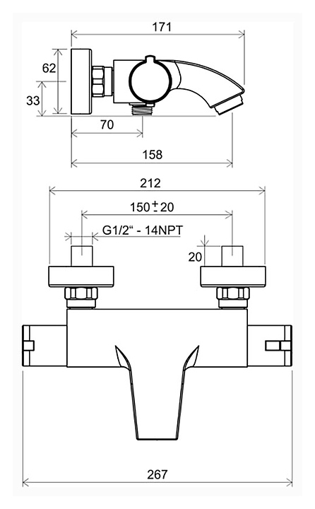 Смеситель для ванны и душа настенный термостатический Ravak TE 082.00/150