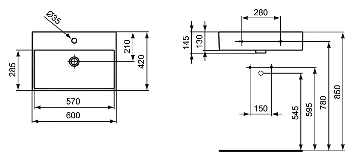 Раковина Ideal Standard Strada K077801 выполнена в современном стиле. Серия Strada отличатся строгими формами. Глубокая раковина позволяет избегать брызг и сохранять чистоту в помещении, а мягкие края с гладким ободом обеспечивают простой и легкий уход. Конструкция обеспечивает простую установку, экономит место и обеспечивает изящный внешний вид. Изделие выполнено из фаянса, который обладает повышенной прочностью и устойчивостью к негативным внешним факторам, а так же способен долгое время сохранять идеальную белизну. В комплект поставки входит слив-перелив. Смеситель и столешница в комплект поставки не входят и приобретается отдельно. Особенности: