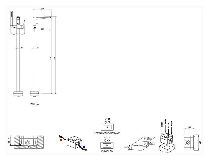 Смеситель для ванны и душа напольный Ravak Freedom FM 081.00 предназначен для использования в ванных помещениях для подачи горячей и холодной воды. Модель оснащена гибким шлангом. Наличие EasyClean гарантирует простое удаление водного камня с лейки. Для подключения смесителя водопровод должен быть вмонтирован в пол и подведён к месту расположения ванны. Изделие выполнено из высококачественной латуни, которая отличается прочностью, долговечностью и устойчивостью к перепадам температур. Смеситель используется с отдельностоящей ванной Ravak Freedom R. В комплект поставки входят душевая лейка, шланг и R-box. Особенности: