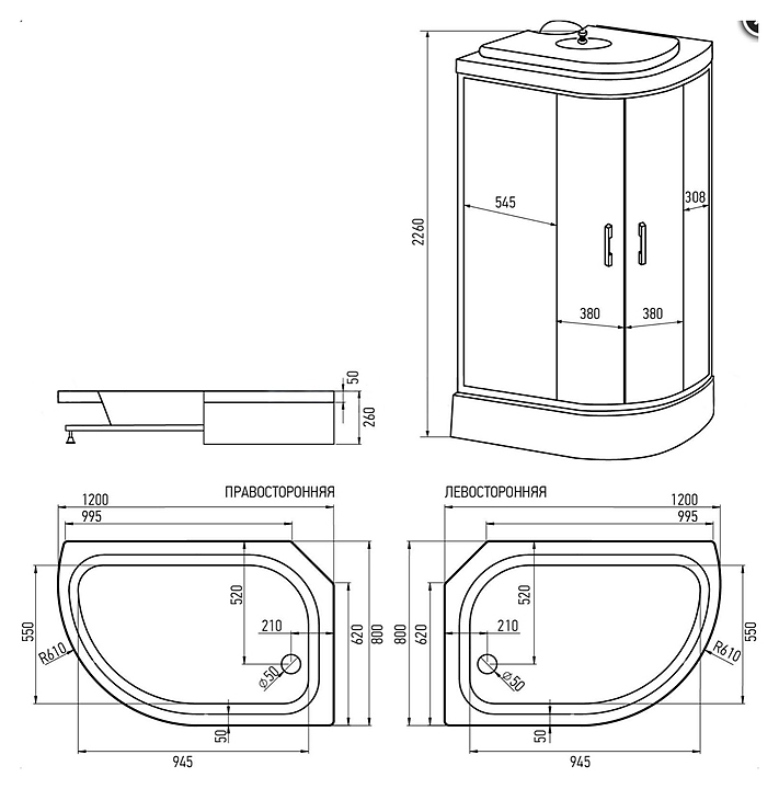 Душевая кабина Erlit ER351226L-C3-RUS левая 120x800x226 см, левая