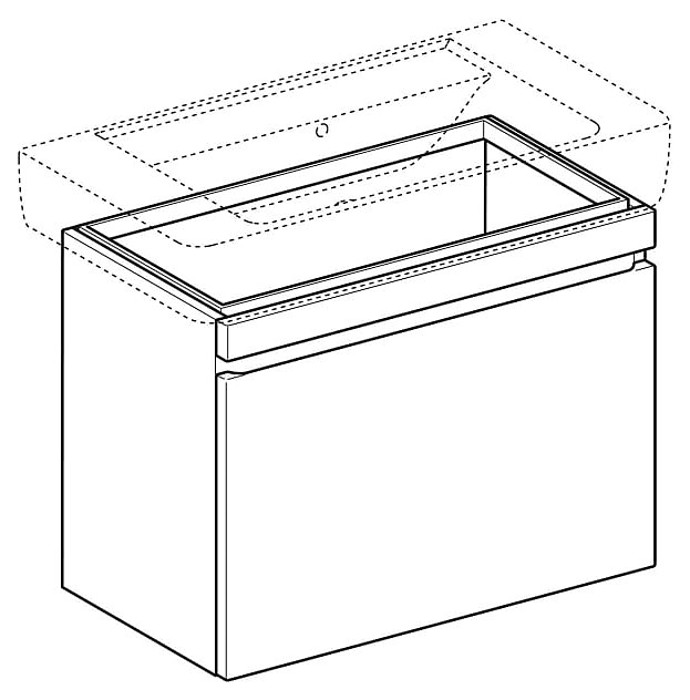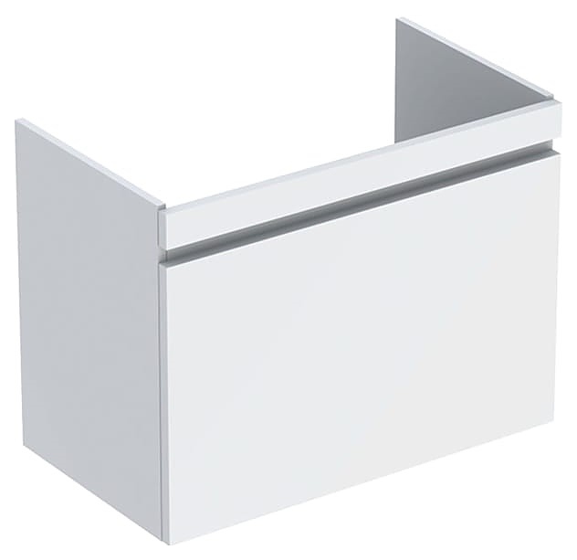 Тумба под раковину Geberit Renova Plan 869850000 лаконичных форм элегантно впишется в интерьер Вашего дома. Благодаря подвесной конструкции модель не занимает много места, что экономит пространство в ванной комнате и облегчает уборку. Тумба оснащена одним выдвижным ящиком. Корпус изготовлен из влагостойкой трехслойной ДСП, фронтальная часть из МДФ с высокоглянцевым покрытием. В комплект поставки входит набор крепежей. Тумба используется с раковинами 122185000. Особенности: