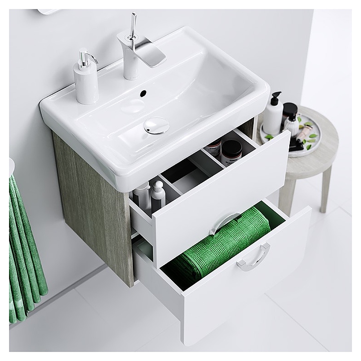 Тумба Aqwella Alicante Alic.01.05/Gray подходит к большинству интерьеров ванных комнат. Подвесная конструкция и отсутствие ножек создают иллюзию парения в воздухе и упрощают уборку. Ящики тумб оснащены скрытыми направляющими с системой мягкого закрывания. Корпус мебели выполнен из ЛДСП повышенной плотности с ламинированным покрытием. Фасады производятся из МДФ и окрашены в белоснежный цвет с высокой степенью глянца полиэфирной краской, которая обеспечивает изделию привлекательный внешний вид, а также износостойкость и долговечность. Тумба используется вместе с раковиной Тигода 55. Для установки понадобится набор крепежей для монтажа на стену. Дополнительные характеристики:
