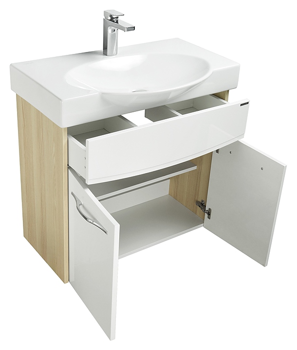 Тумба AQUATON Инфинити 76Н 1A196701IFSC0 выполнена в современном стиле. Напольная конструкция обеспечивает легкий монтаж и не требует специального ремонта в помещении. Модель оснащена верхним выдвижным ящиком с системой плавного закрывания без лицевой фурнитуры и распашными фасад-створками, за которыми находится регулируемая по высоте полка. Корпус изделия выполнен из влагостойкой ЛДСП в цвете ясень коимбра, а фасады из высококачественной МДФ и окрашены белоснежной глянцевой полиэфирной краской ультрафиолетового отверждения, которая обеспечивает изделию привлекательный внешний вид, а также износостойкость и долговечность. Тумба используется вместе с раковиной Infinity 76 1AX162WBXX000. Комплектация: