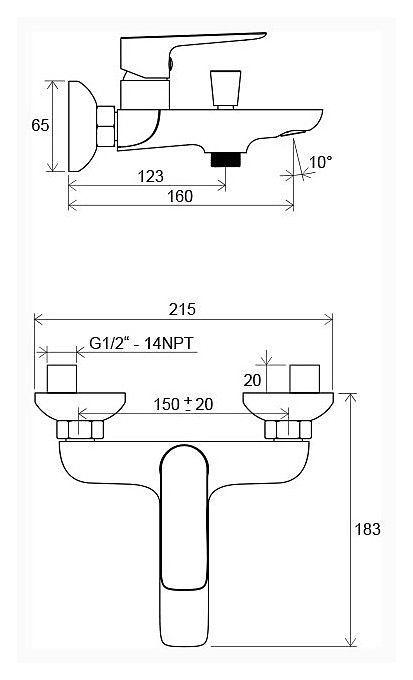 Смеситель для ванны и душа настенный Ravak Classic CL 022.00/150