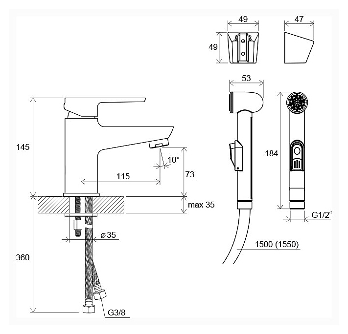 Смеситель для раковины Ravak BM 011.00 предназначен для использования в ванных помещениях для подачи горячей и холодной воды. Модель оснащена гигиеническим душем, который гарантирует современный способ гигиены даже в самых маленьких туалетных комнатах, где невозможно установить классическое биде, помимо этого душ можно использовать для других целей, например, для наполнения ведра водой во время уборки. Рычаг характеризуется гладкой и непрерывной работой. Аэратор EasyClean гарантирует простое удаление водного камня. Изделие выполнено из высококачественной латуни, которая отличается прочностью, долговечностью и устойчивостью к перепадам температур. В комплект поставки входит ручной душ с настенным держателем. Особенности:
