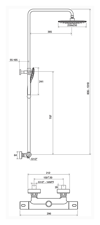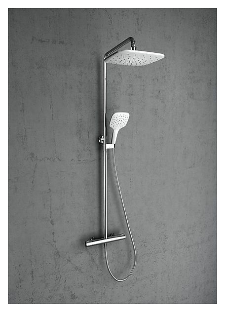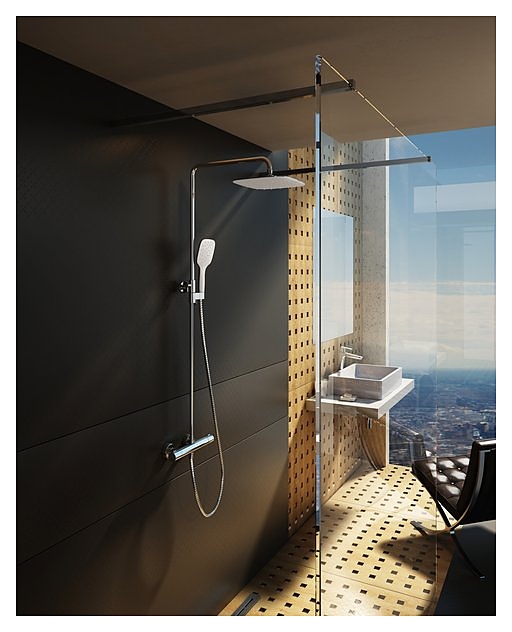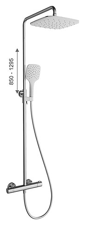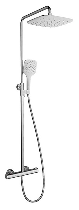 Душевая стойка Ravak TE 093.00/150 Termo 300 используется в ванных комнатах. Модель оснащена прямоугольной лейкой, квадратным верхним душем и однорычажным термостатическим смесителем. Стойка крепится к стене. Периодически рекомендуется выставлять регулятор температуры на максимальное значение для предотвращения оседания накипи. В комплект поставки входит душевой шланг. Особенности: