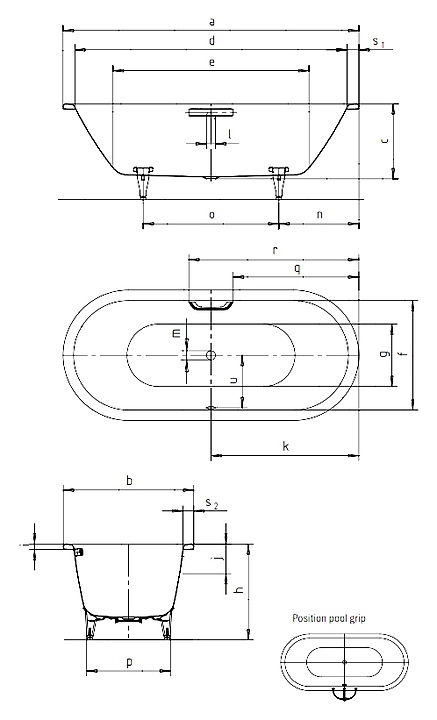 • Расстояние от края ванны до центра сливного отверстия: 900 мм
