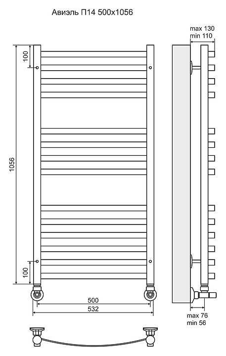 Полотенцесушитель Terminus Авиэль П14 50x105,6 см, нержавеющая сталь